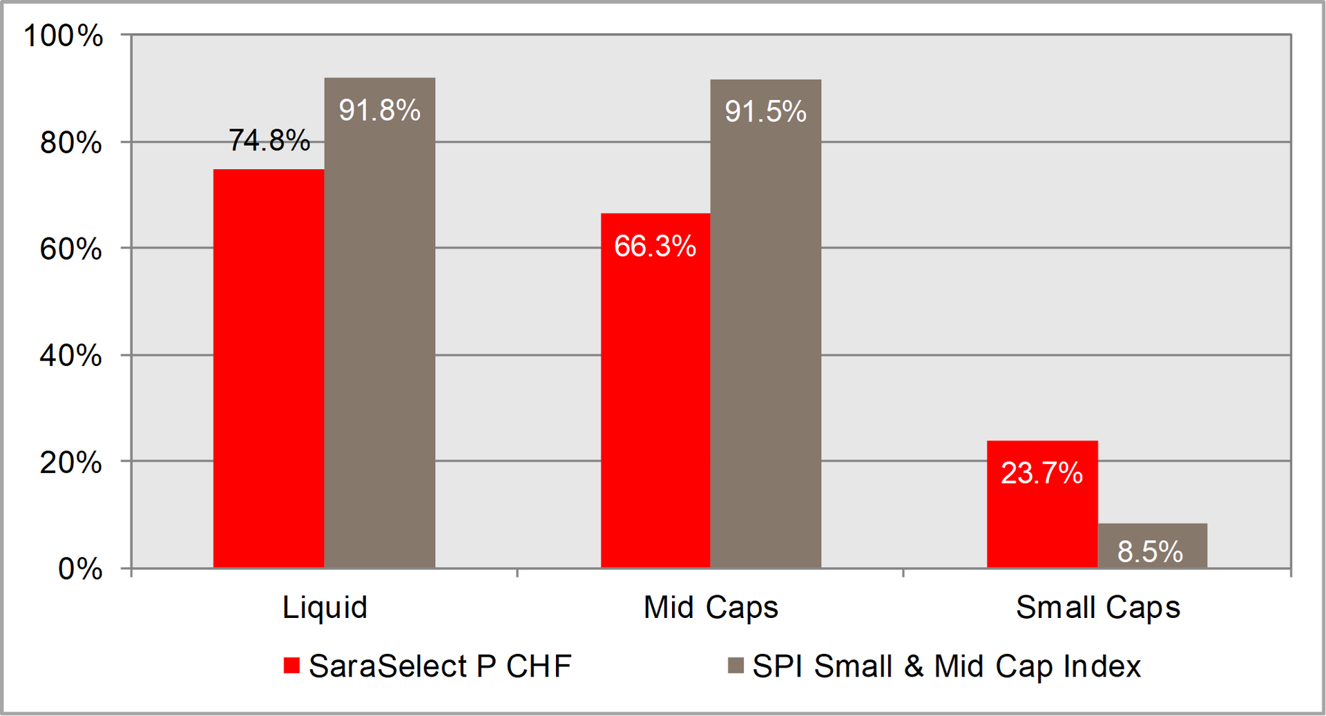 SaraSelect is a pure equity fund and belongs to the flag ship offering of Bank J. Safra Sarasin AG. The fund was launched beginning 1996 and is investing in Swiss small & mid caps, with a clear focus on quality and stability, leading to a strong bias to small caps.